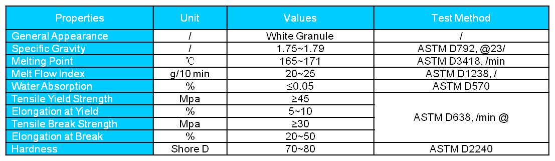 SINOF® Z100 PVDF is a white pellet of polyvinylidene fluoride homopolymer with low viscosity, which can be well fabricated by injection into products such as PVDF parts, PV backsheet films, Solar cell carriers.